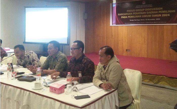 TRIBUNTORAJA.COM, RANTEPAO - Komisi Pemilihan Umum (KPU) Kabupaten Toraja Utara (KPU Torut) mengadakan Focus Grup Discussion (FGD) rancangan penataan daerah pemilihan (dapil) pada Pemilu 2024 di Heritage Hotel, Kota Rantepao, Toraja Utara, Sabtu (19/11/2022) sore.