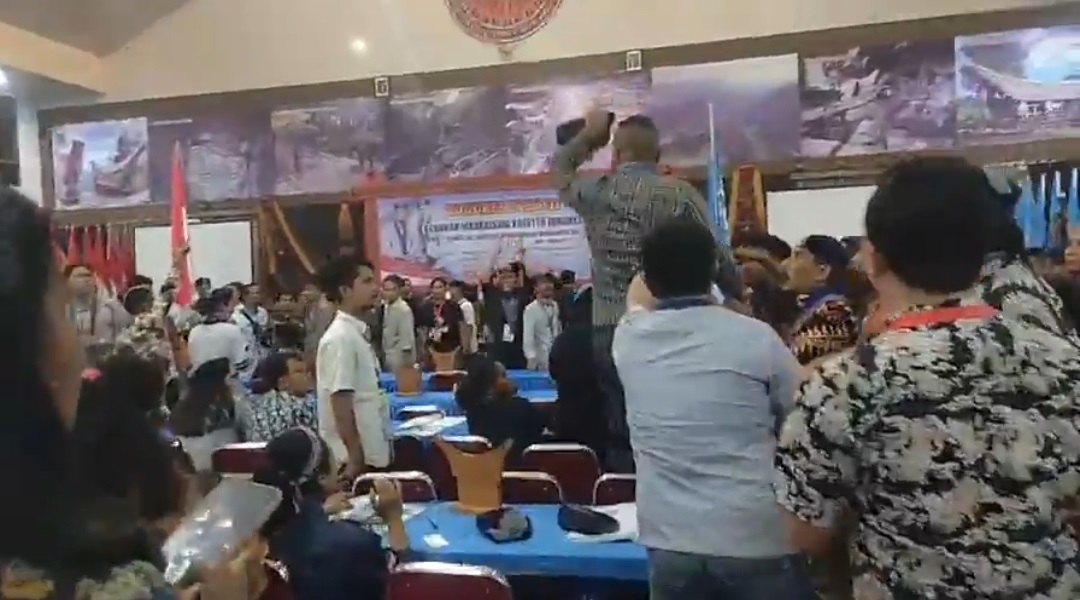 Keributan pertama mulai pecah sekitar pukul 16.00 Wita, pada hari keempat kongres di Gedung Tammuan Mali', Patung Peluru, Kecamatan Makale, pusat kota Toraja, Jumat (25/11/2022).
