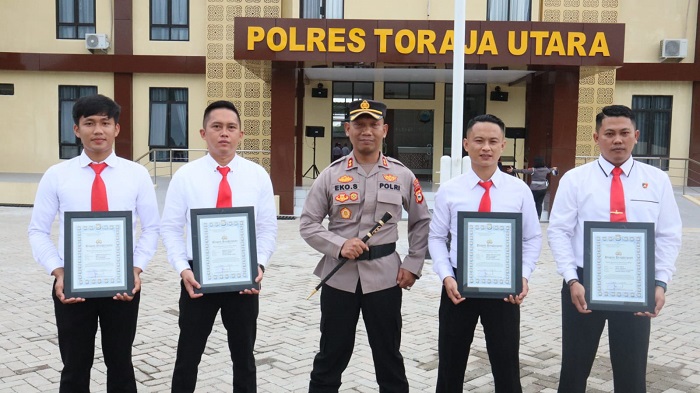 Ungkap Tindak Kejahatan, Empat Personil Sat Reskrim Polres Toraja Utara Diganjar Penghargaan
