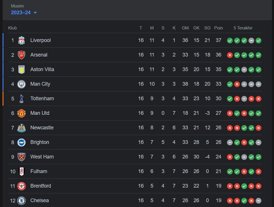 Kekalahan ini membuat Man United tertahan di posisi ke-6 klasemen sementara Premier League dengan torehan 27 poin.