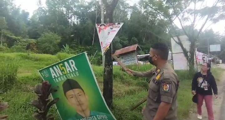 Satpol PP dan Bawaslu Toraja Utara Cabut Puluhan APK Dipaku di Pohon